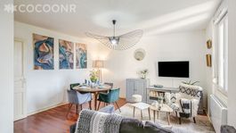 Appartement au 2nd étage d'un immeuble dans un quartier avec de jolies maisons. L'intérieur est plus accueillant que l'extérieur. La vue est en ce mois de juin 2025 sur un immeuble en construction. Heureusement la mer est à 15 mn à pied en traversant des petites rues avec de magnifiques propriétés. Le quartier est paisible. L'intérieur est spacieux avec deux grandes chambres. Le salon est bien décoré également.