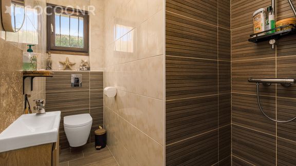 - Une salle d'eau avec douche, WC