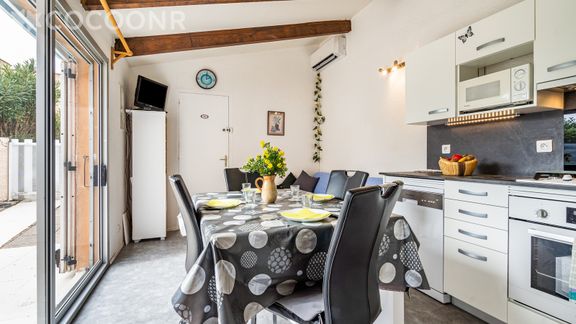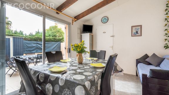Cette maisonnette aux abords fleuris saura vous charmer par la tranquillité qui s'y dégage. Véritable havre de paix au cœur de la frénétique ville d'Agde, l'Agate est une maisonnette tout confort, située à seulement 10 minutes de la plage.