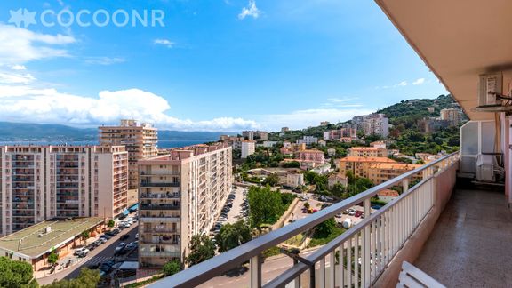 L'agence Cocoonr/Book&Pay vous propose à la location à Ajaccio, ce charmant appartement climatisé avec vue mer et vue montagne, d’une superficie de 80 m² et pouvant accueillir jusqu’à 4 voyageurs. Situé au 9e étage (avec ascenseur), il se compose d’une jolie pièce à vivre de 25 m², d'une cuisine équipée, de deux belles chambres et d'une salle d'eau. Wifi, draps et serviettes inclus, nous n’attendons plus que vous !