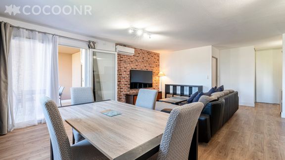 L'agence Cocoonr/Book&Pay vous propose à la location, à Ajaccio, ce charmant appartement climatisé à moins d’un kilomètre de la plage, d’une superficie de 72 m² et pouvant accueillir jusqu’à 4 voyageurs. Situé au 2ᵉ étage (avec ascenseur), il se compose d’une jolie pièce à vivre de 35 m², d'une cuisine équipée, de deux belles chambres, et d'une salle d'eau (avec douche). Wifi (fibre optique) inclus, nous n’attendons plus que vous !