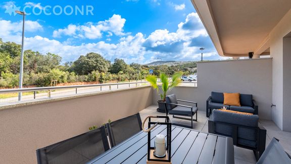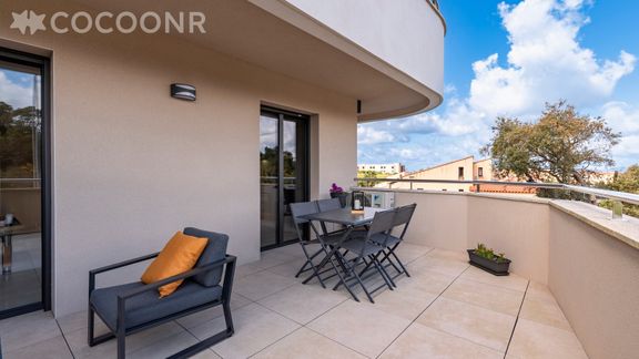 L’appartement est idéalement situé à Albitreccia, dans un environnement très agréable. Vous pourrez bénéficier à proximité de tous les commerces essentiels mais aussi de boutiques, restaurants, bars, marché...