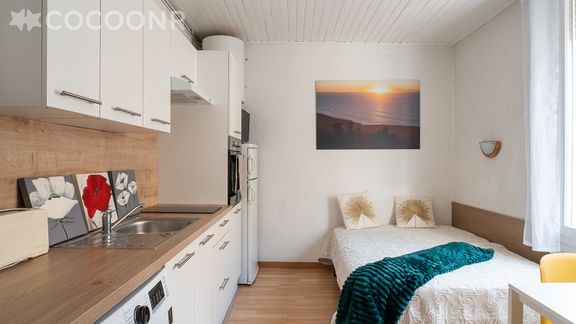L'agence Cocoonr/Book&Pay vous propose à la location, Amélie-les-Bains-Palalda, ce charmant studio climatisé d’une superficie de 17 m² et pouvant accueillir jusqu’à 2 voyageurs. Situé au 1ᵉʳ étage (sans ascenseur), il se compose d’une jolie pièce à vivre de 13 m², d'une cuisine équipée et d'une salle d'eau.