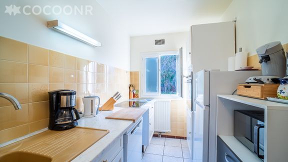 - Une cuisine équipée avec notamment : bouilloire électrique, four, four à micro-ondes, grille-pain, lave-vaisselle, plaques de cuisson...
