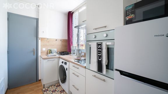 - Une cuisine équipée avec notamment : bouilloire électrique, four, four à micro-ondes, grille-pain, plaques de cuisson...