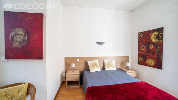 - Une pièce de vie de 15 m² avec une chambre (un lit double (140×190)), TV, penderie