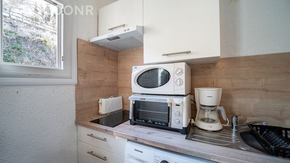 - Une cuisine équipée avec notamment : bouilloire électrique, four, four à micro-ondes, grille-pain, plaques de cuisson...