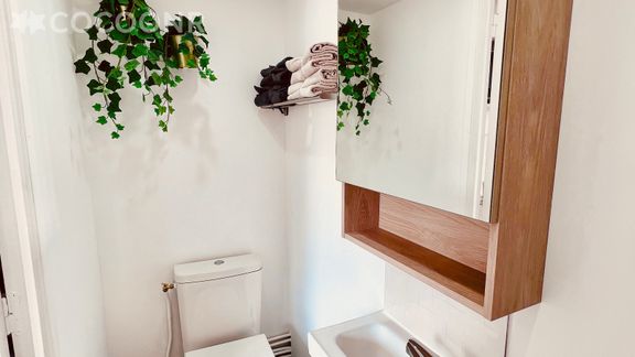 - Une pièce de vie avec TV (Molotov & Netflix), Wifi (fibre optique), canapé et coin repas.