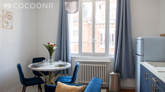 L'agence Cocoonr/Book&Pay vous propose à la location, à Amiens, cet appartement d’une superficie de 29 m² et pouvant accueillir jusqu’à 4 voyageurs. Situé au 1er étage (sans ascenseur), il se compose d’une pièce à vivre de 14 m², d'une cuisine équipée, d'une belle chambre et d'une salle d'eau (avec douche). Wifi (fibre optique), draps et serviettes inclus, nous n’attendons plus que vous !