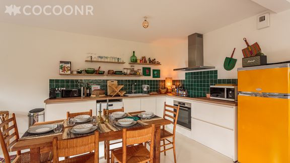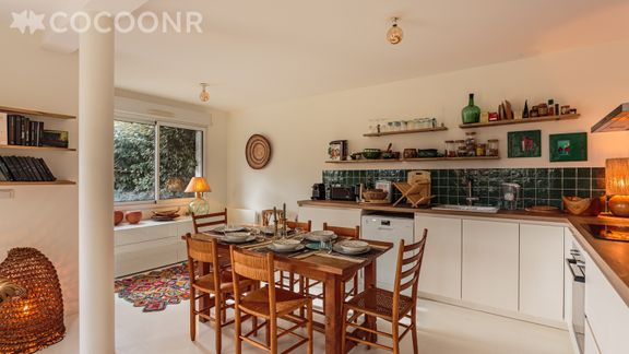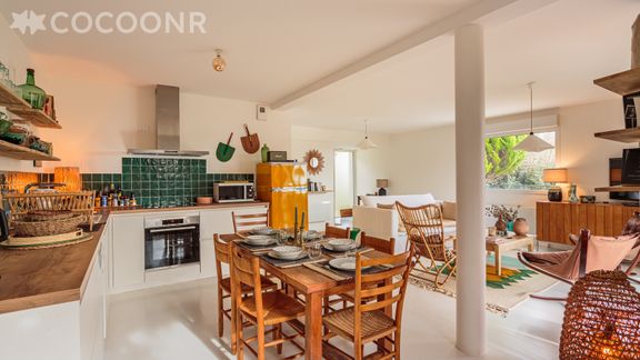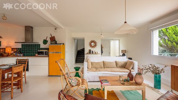 L'agence Cocoonr/Book&Pay vous propose à la location, à Anglet, cette charmante maison mitoyenne d’une superficie de 100 m² et pouvant accueillir jusqu’à 6 voyageurs. Elle est composée d’une jolie pièce à vivre de 45 m², d'une cuisine équipée, de trois belles chambres et de deux salles d'eau (avec douche). Wifi (fibre optique), draps et serviettes inclus, nous n’attendons plus que vous !