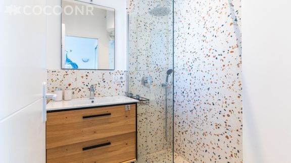 - Une chambre avec un lit double (140×190), une salle d'eau attenante avec douche