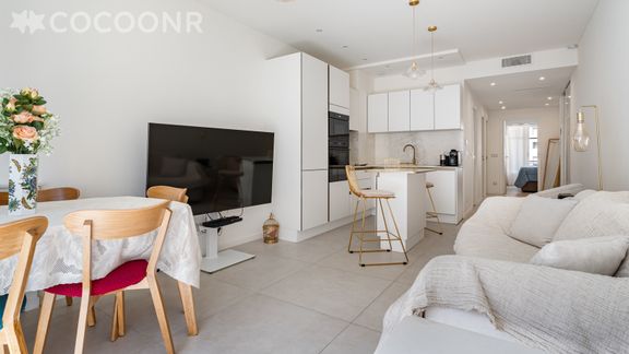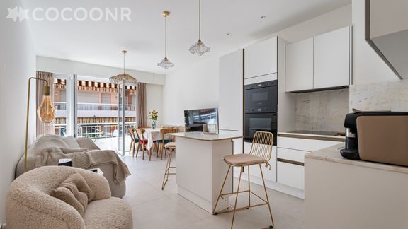 L'agence Cocoonr/Book&Pay vous propose à la location, à Antibes, ce charmant appartement traversant, climatisé à 150 m des plages, d’une superficie de 57 m² et pouvant accueillir jusqu’à 5 voyageurs. Situé au 3e étage (avec ascenseur), il se compose d’une jolie pièce à vivre de 30 m², d'une cuisine ouverte équipée, de deux belles chambres, et d'une salle d'eau (avec douche). Wifi (fibre optique), draps et serviettes inclus, nous n’attendons plus que vous !