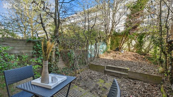 - Un jardin privé exposé au nord de 20 m² avec une table et des chaises mobiliers pour profiter des beaux jours