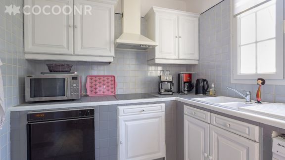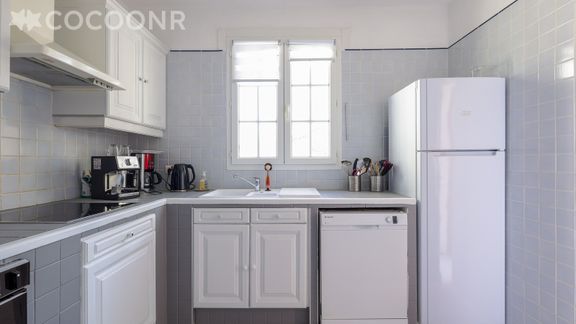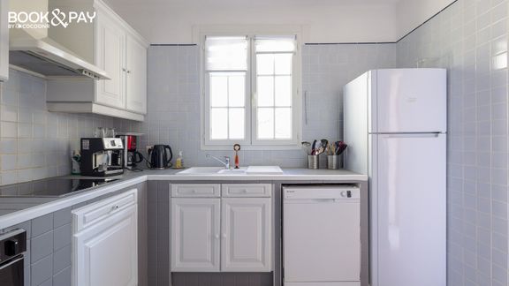 - Une cuisine équipée avec notamment : bouilloire électrique, four, four à micro-ondes, grille-pain, lave-vaisselle, plaques de cuisson...