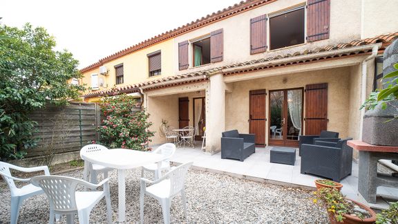 L'agence Cocoonr/Book&Pay vous propose à la location, à Argelès-sur-Mer, cette charmante maison à moins d’un kilomètre de la plage, d’une superficie de 100 m², qui peut accueillir jusqu’à 8 voyageurs, mais est toutefois inadaptée pour recevoir un groupe de jeunes. Elle est composée d’une jolie pièce à vivre de 35 m², d'une cuisine équipée, de trois belles chambres, d'une salle de bain et d’un jardin d’environ 35 m² ainsi que d'une terrasse. Nous n’attendons plus que vous !