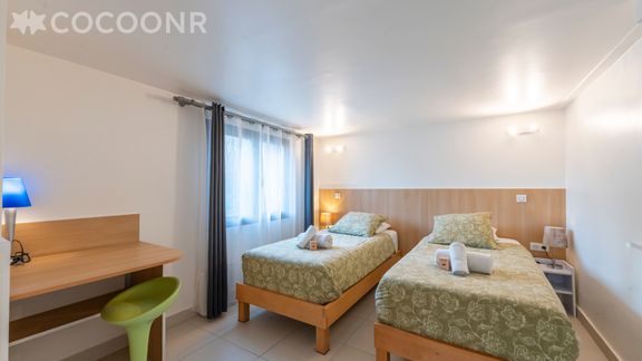 - Une chambre avec 2 lits simples pouvant être rapprochés