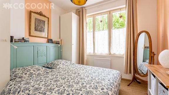 - Une chambre (côté rue) avec un lit queen-size (160×200)