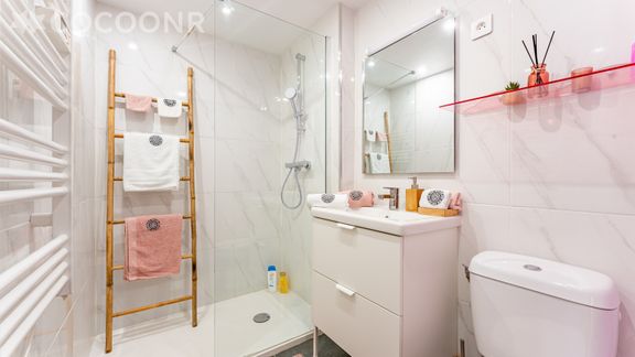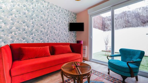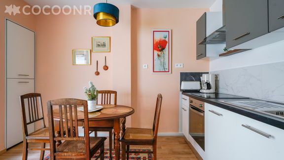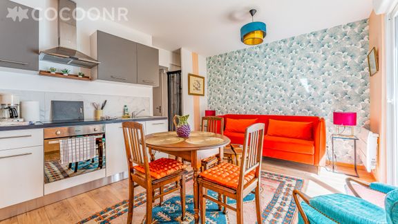 - Une pièce de vie de 15 m² avec TV (abonnement netflix), canapé-lit, fauteuil et espace repas.
