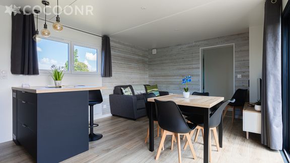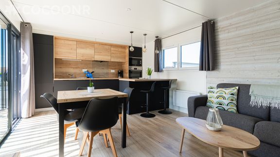 - Une pièce de vie de 22 m² avec TV, canapé-lit double et espace repas