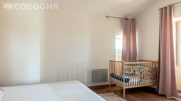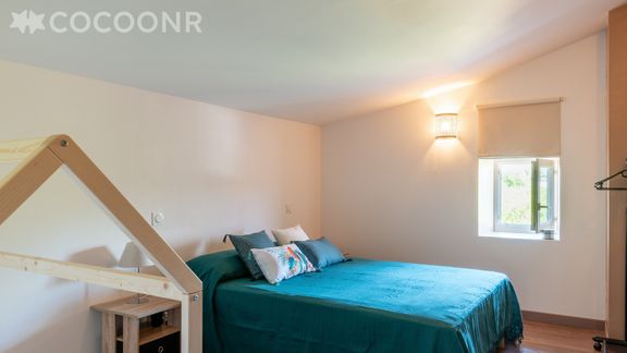 - Chambre 2 : un lit double (140×190) et un petit lit cabane pour un enfant.