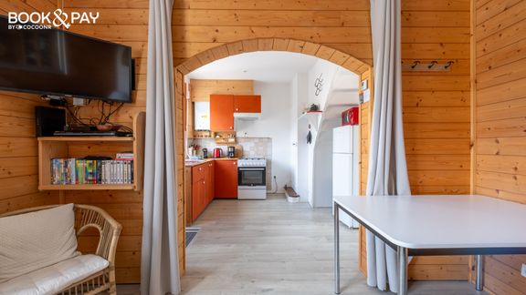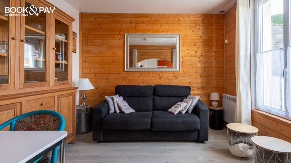 - Une pièce de vie de 16 m² avec TV, canapé-lit double et espace repas