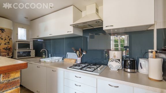 - Une cuisine équipée avec notamment : bouilloire électrique, four, four à micro-ondes, grille-pain, plaques de cuisson...
