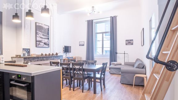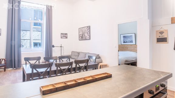 - Une pièce de vie de 33 m² avec TV, canapé..