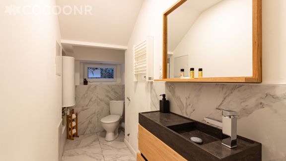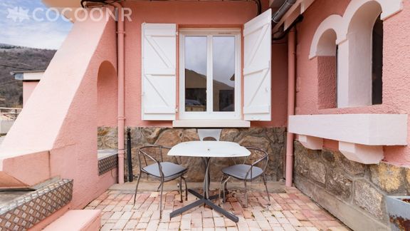 - Une terrasse de 23 m² avec vue sur la montagne, partagée et non clôturée. Elle est équipée d'une table et de chaises réservées au logement pour profiter des beaux jours.