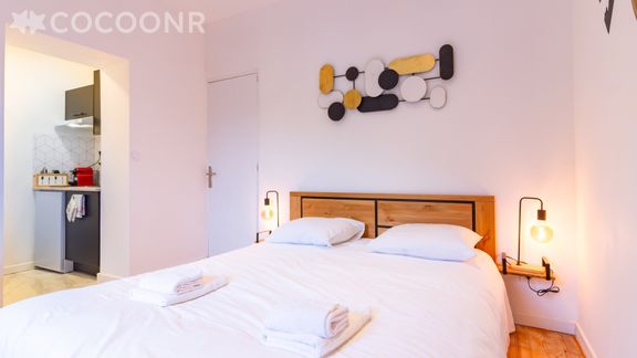- Une pièce de vie avec un lit queen-size (160×200), et coin repas