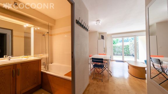 L'agence Cocoonr/Book&Pay vous propose à la location, à Bagnères-de-Luchon, cet appartement avec piscine partagée, d’une superficie de 35 m² et pouvant accueillir jusqu’à 6 voyageurs. Situé au rez-de-chaussée, il se compose d’une jolie pièce à vivre de 18 m², d'une kitchenette équipée, de deux chambres et d'une salle de bain (avec baignoire).