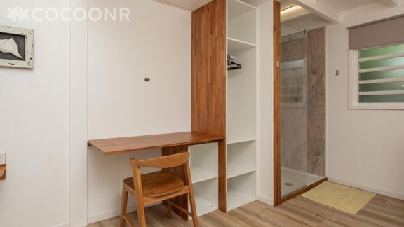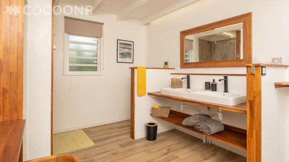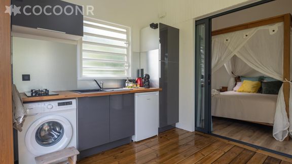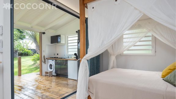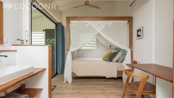 L'agence Cocoonr/Book&Pay vous propose à la location, à Baie-Mahault, ce charmant bungalow climatisé avec piscine partagée, d’une superficie de 40 m² et pouvant accueillir jusqu’à 2 voyageurs. Il est composé d’une varangue / terrasse couverte de 20 m² intégrant une kitchenette équipée, d’une belle chambre avec une salle d'eau ouverte (avec douche) et vous pourrez profiter d’un jardin d’environ 400 m². Wifi (fibre optique), draps et serviettes inclus, nous n’attendons plus que vous !