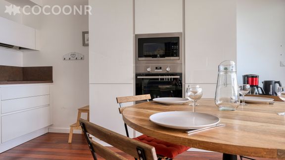 - Une cuisine équipée avec notamment : bouilloire électrique, four, four à micro-ondes, grille-pain, plaques de cuisson...