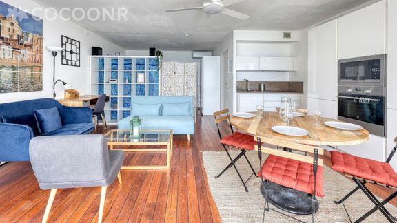 L'agence Cocoonr/Bookandpay vous propose à la location, à Bandol, ce charmant appartement duplex climatisé avec vue mer, d’une superficie de 68 m² et pouvant accueillir jusqu’à 5 voyageurs. Situé au rez-de-chaussée, il se compose d’une jolie pièce à vivre de 68 m², d'une cuisine équipée, d'une chambre, un espace nuit et deux salles de bain (avec douche).