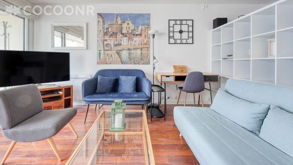 - Une pièce de vie de 39 m² avec TV, un canapé-lit ...