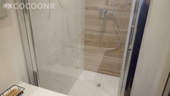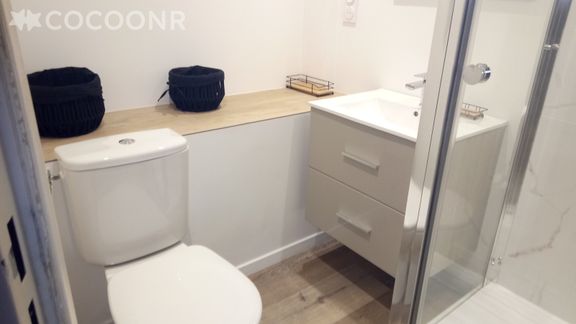 - Une salle d'eau avec douche, WC et sèche cheveux.