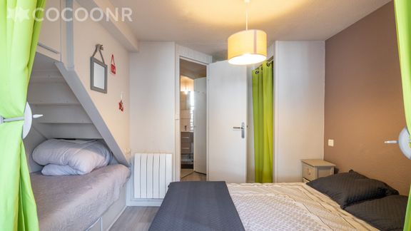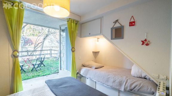 - Une chambre avec un lit double (140×190) et un lit simple.