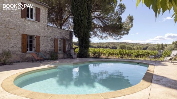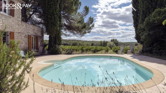 Nous vous proposons à la location, à Barjac, ce joli Mas avec piscine, entre le Gard et l’Ardèche, d’une superficie de 150 m² pouvant accueillir des familles jusqu’à 10 personnes. Elle est composée d’une jolie pièce à vivre de 60 m², d'une cuisine, indépendante, équipée, donnant sur la terrasse couverte, de 3 belles chambres, de 2 salles d'eau (avec douche) et d’une salle de jeu.