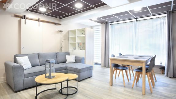 - Une pièce de vie de 25 m² avec TV, un canapé-lit double et un coin repas