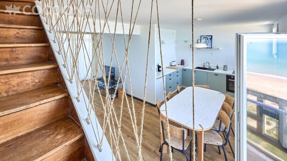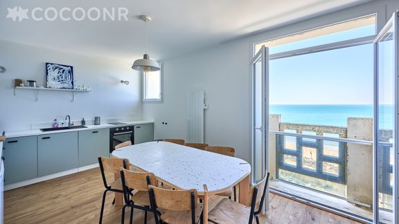 L'agence Cocoonr/Book&Pay vous propose à la location, à Barneville-Carteret, ce charmant duplex climatisé en front de mer et exposé plein sud, d’une superficie de 66 m² et pouvant accueillir jusqu’à 8 voyageurs. Situé au 4e étage (sans ascenseur), il se compose d’une jolie pièce à vivre lumineuse avec cuisine ouverte entièrement équipée, de trois belles chambres ainsi que de deux salles de bain, l’une avec douche, l’autre avec baignoire. Nous n'attendons plus que vous !