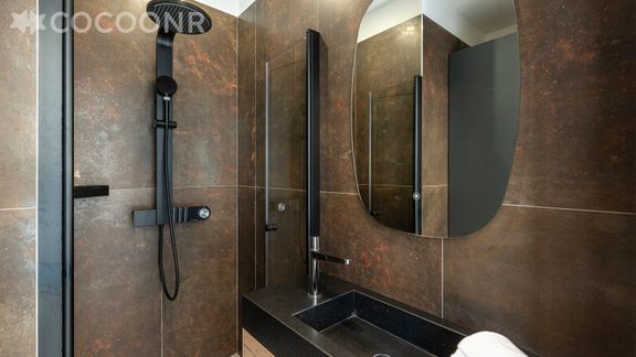 - Chambre 1 : avec un lit queen-size (160×200) et sa salle d'eau attenante (avec douche et WC)