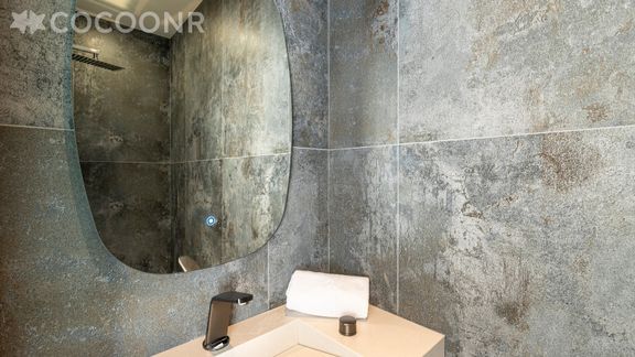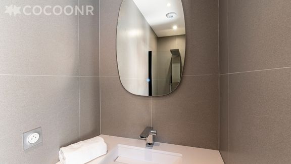 - Chambre 2 : avec deux lits jumeaux formant un queen-size (160×200) et sa salle d'eau attenante (avec douche)