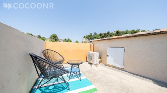 - Une terrasse de 10 m² pour profiter des beaux jours. Elle est située à l'étage de l'appartement, accessible par l'escalier du cellier.