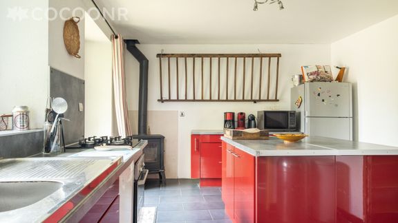 - Une cuisine équipée avec notamment : bouilloire électrique, four, four à micro-ondes, grille-pain, lave-vaisselle, plaques de cuisson, cafetière à dosettes Tassimo...