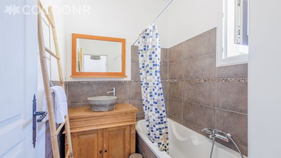 - Une salle de bain avec baignoire