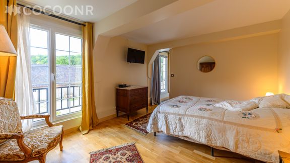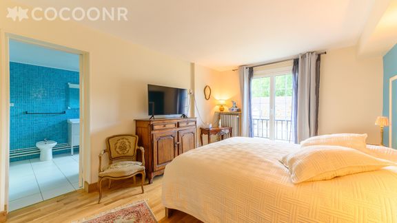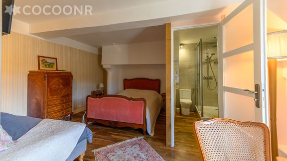 - Chambre 1 : 1 lit queen-size (160x200) + salle de bain (avec baignoire) + WC
