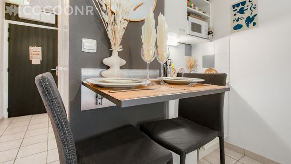 L'agence Cocoonr/Book&Pay vous propose à la location, à Béziers, ce charmant studio climatisé d’une superficie de 18 m² et pouvant accueillir jusqu’à 2 voyageurs. Situé au rez-de-chaussée, il se compose d’une jolie pièce à vivre de 18 m², d'une kitchenette ouverte équipée et d'une salle de bain. Wifi (fibre optique), draps et serviettes inclus, nous n’attendons plus que vous !