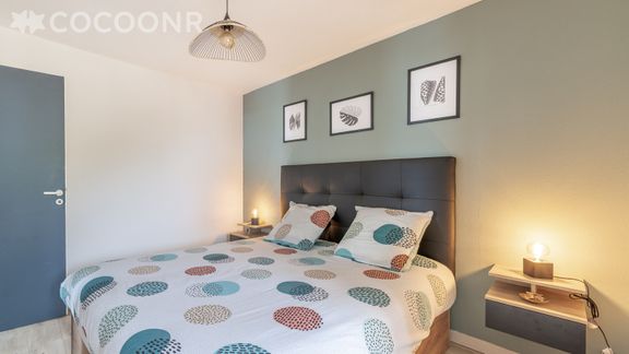 - Une chambre avec un lit queen-size (160×200) et un placard penderie.