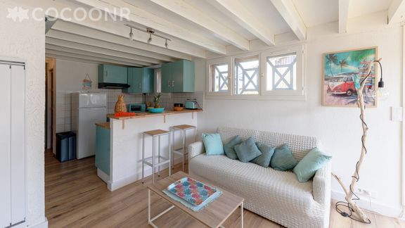 - Une pièce de vie avec TV, canapé convertible (2 couchages) et un coin repas
