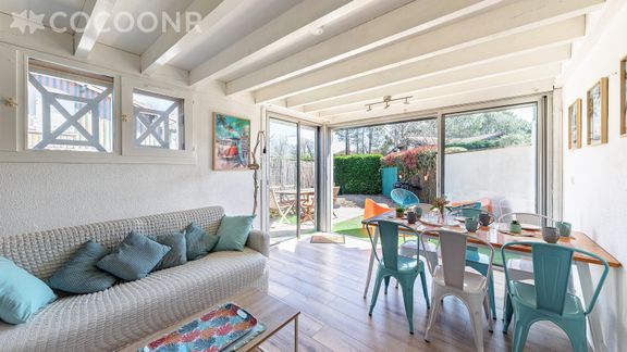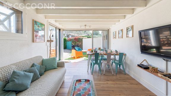 L'agence Cocoonr/Book&Pay vous propose à la location, à Biscarrosse Navarosse, cette maison. D’une superficie de 50 m², elle peut accueillir jusqu’à 7 voyageurs. Elle est composée d’une pièce à vivre, d'une cuisine ouverte équipée, de deux chambres, une salle de bain (avec baignoire) et vous pourrez profiter d’un jardin et d'une terrasse d’environ 150 m². Draps inclus, nous n’attendons plus que vous !