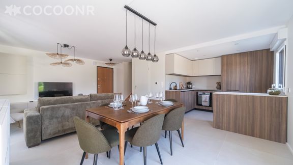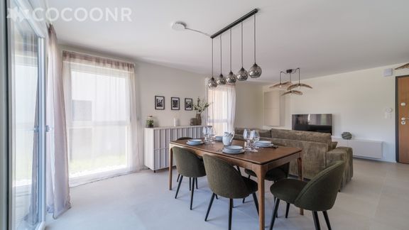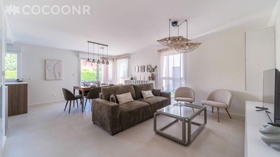 - Une pièce de vie de 35 m² avec TV, canapé-lit et espace repas